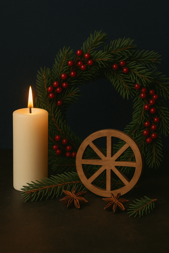 👉 Beaucoup de traditions de Noël viennent directement de Yule (bougies, feu, sapin, couronne).