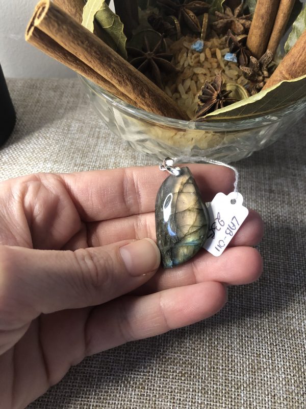 Portée en pendentif, la labradorite se place près du cœur, favorisant une connexion continue avec son énergie protectrice.