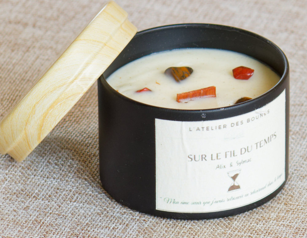 Sur le Fil du Temps évoque la fragilité du destin, les choix qui marquent une vie et les ponts invisibles entre passé et présent. Cette bougie a été imaginée pour traduire cette intensité émotionnelle à travers une fragrance à la fois ancrée et spirituelle, reliant la terre au ciel.