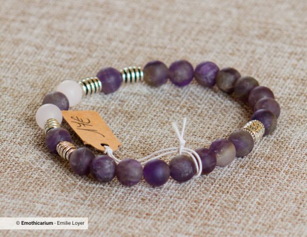 Ensemble, ces deux pierres créent un cocon de douceur et de sécurité émotionnelle : l’Améthyste apaise, le Quartz Rose répare. Un bracelet parfait pour les personnes sensibles, pour celles qui traversent une période de stress, ou pour quiconque souhaite retrouver une stabilité émotionnelle et un amour de soi durable.