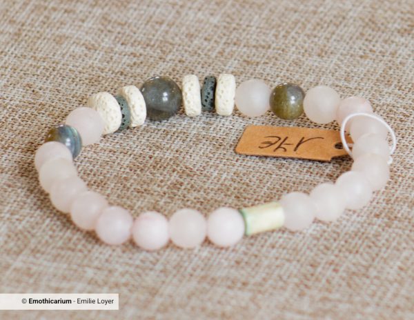Ce bracelet associe la force protectrice de la Labradorite et la douceur réparatrice du Quartz Rose pour créer un équilibre subtil entre sécurité, confiance et apaisement émotionnel.