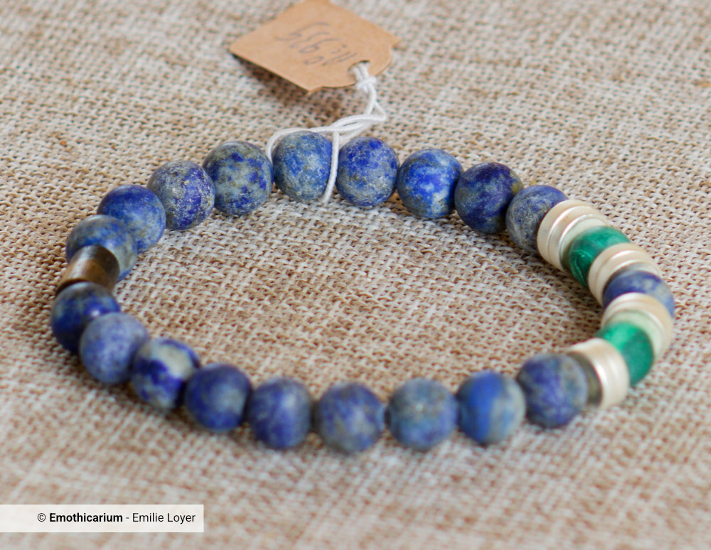 Ensemble, ces deux pierres créent un équilibre vibrant : la Malachite apporte l’audace et la libération intérieure, tandis que le Lapis-Lazuli offre la vision, la concentration et le souffle créatif.
