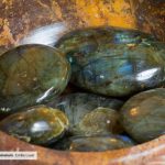 La labradorite est un feldspath plagioclase découvert au XVIIIe siècle au Labrador, au Canada, d’où elle tire son nom. Sa particularité vient de son phénomène optique appelé “labradorescence”, qui lui confère des reflets chatoyants multicolores.