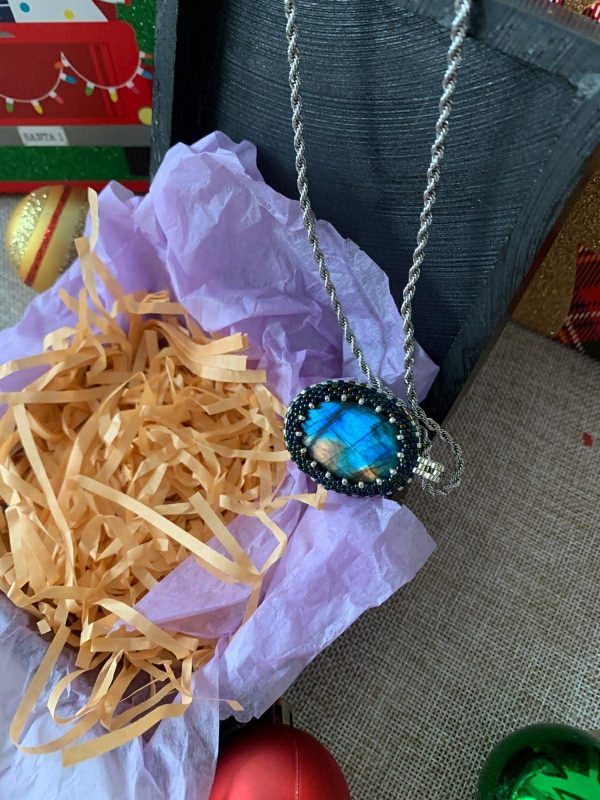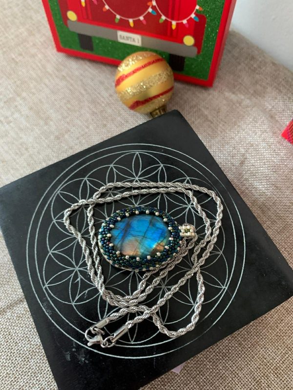 ✨ Le collier en labradorite entièrement serti de perles de verre