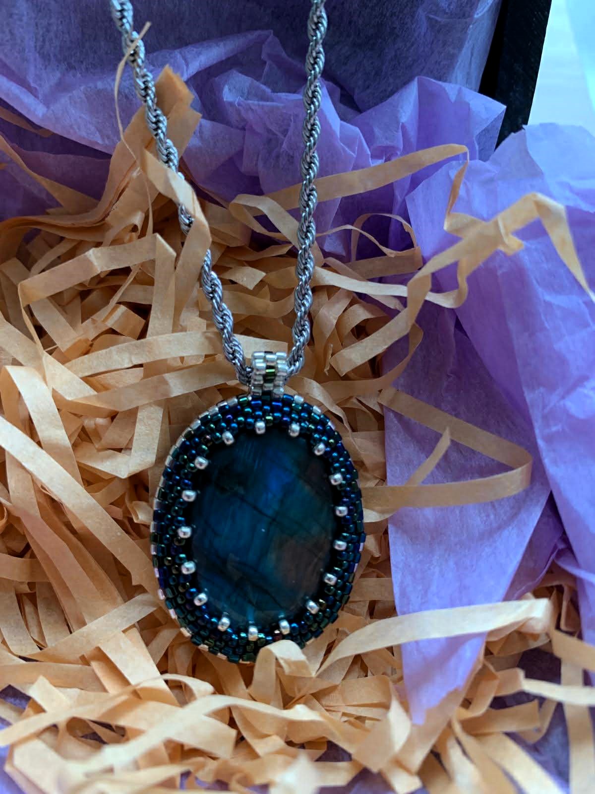 ✨ Le collier en labradorite entièrement serti de perles de verre
