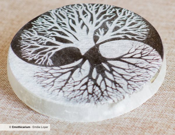Ce plateau en sélénite gravé du symbole Yin & Yang incarne l’équilibre absolu entre les énergies du féminin et du masculin, de l’ombre et de la lumière, du mouvement et du repos. Ce disque diffuse une énergie de pureté, d’harmonie et de recentrage.